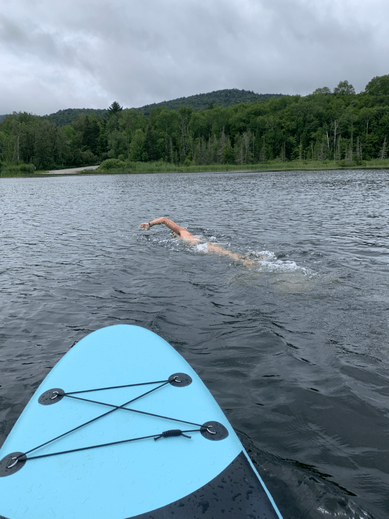 I got in a great open water session Thursday in one of the nearby ponds. I had a little supervision in Naomi paddleboarding behind me while I put some decent efforts to sharpen up a bit.
